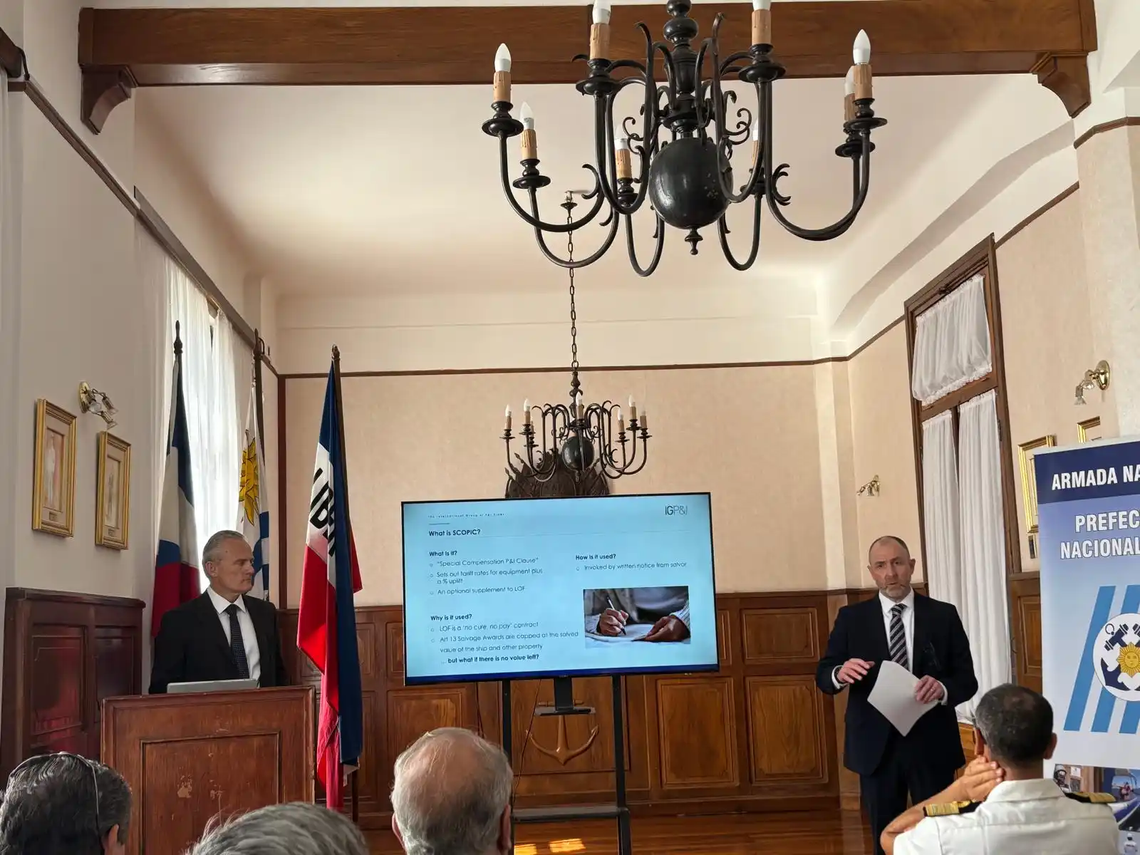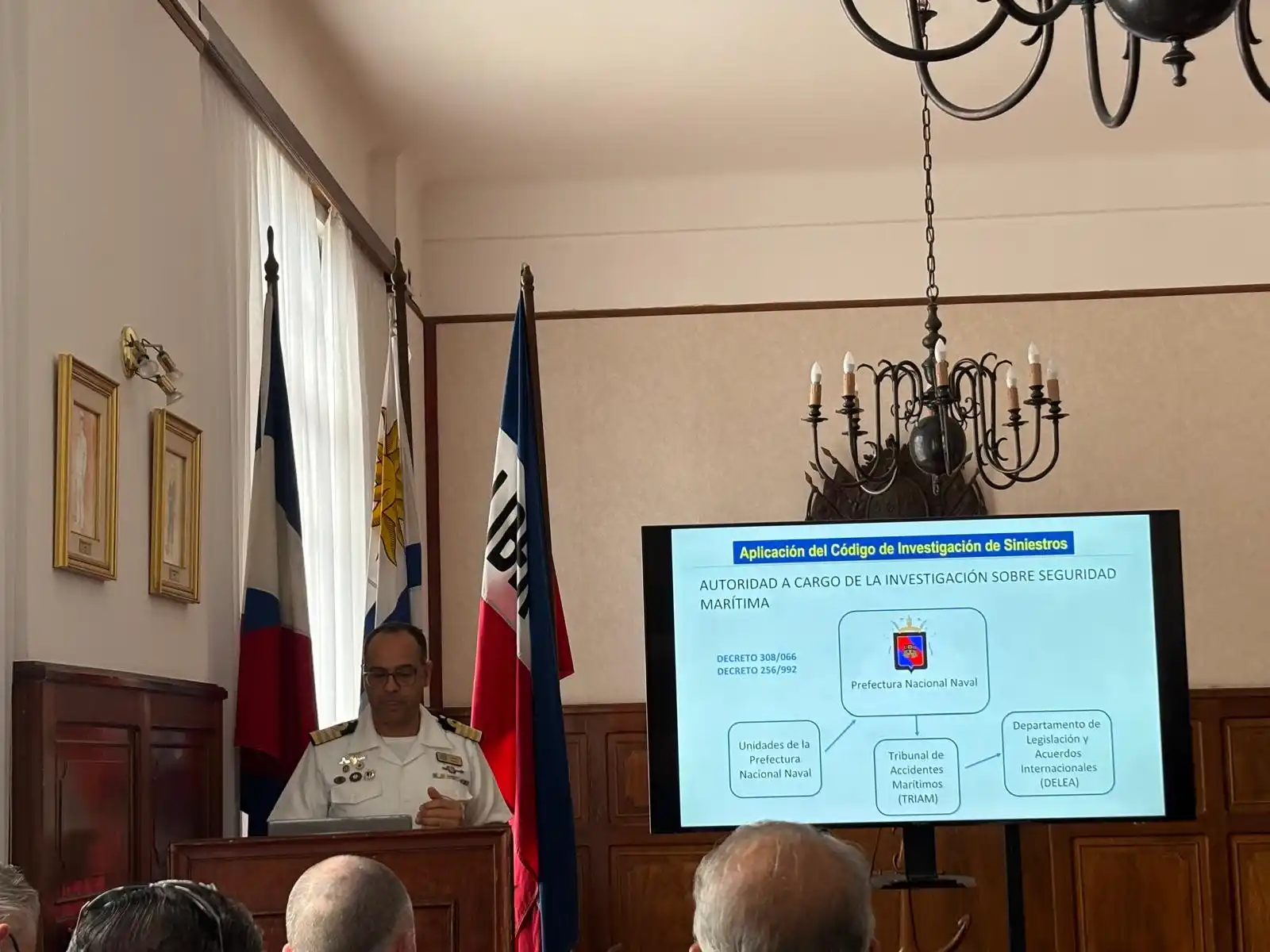 En la mañana de hoy, se desarrollo una jornada sobre Siniestros e incidentes Marítimos, organizada por la Armada Nacional, en el edificio del Comando de la Armada. Luego de la apertura por parte del señor Prefecto Nacional Naval Contralmirante José Luis Elizondo, varios expositores dieron su punto de vista sobre este tema, tanto del ámbito local como internacional.