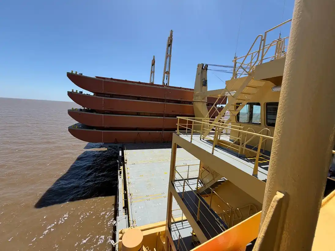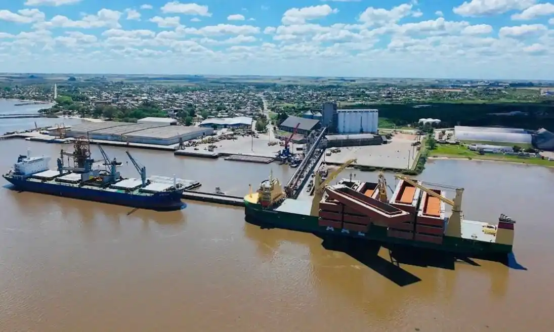 Primer buque con barcazas para mineral arriba a Nueva Palmira