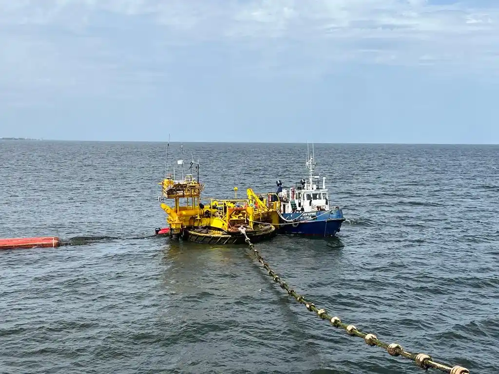 normal es de 17 m. El fondo marino es de arcilla y arena sin obstáculos,