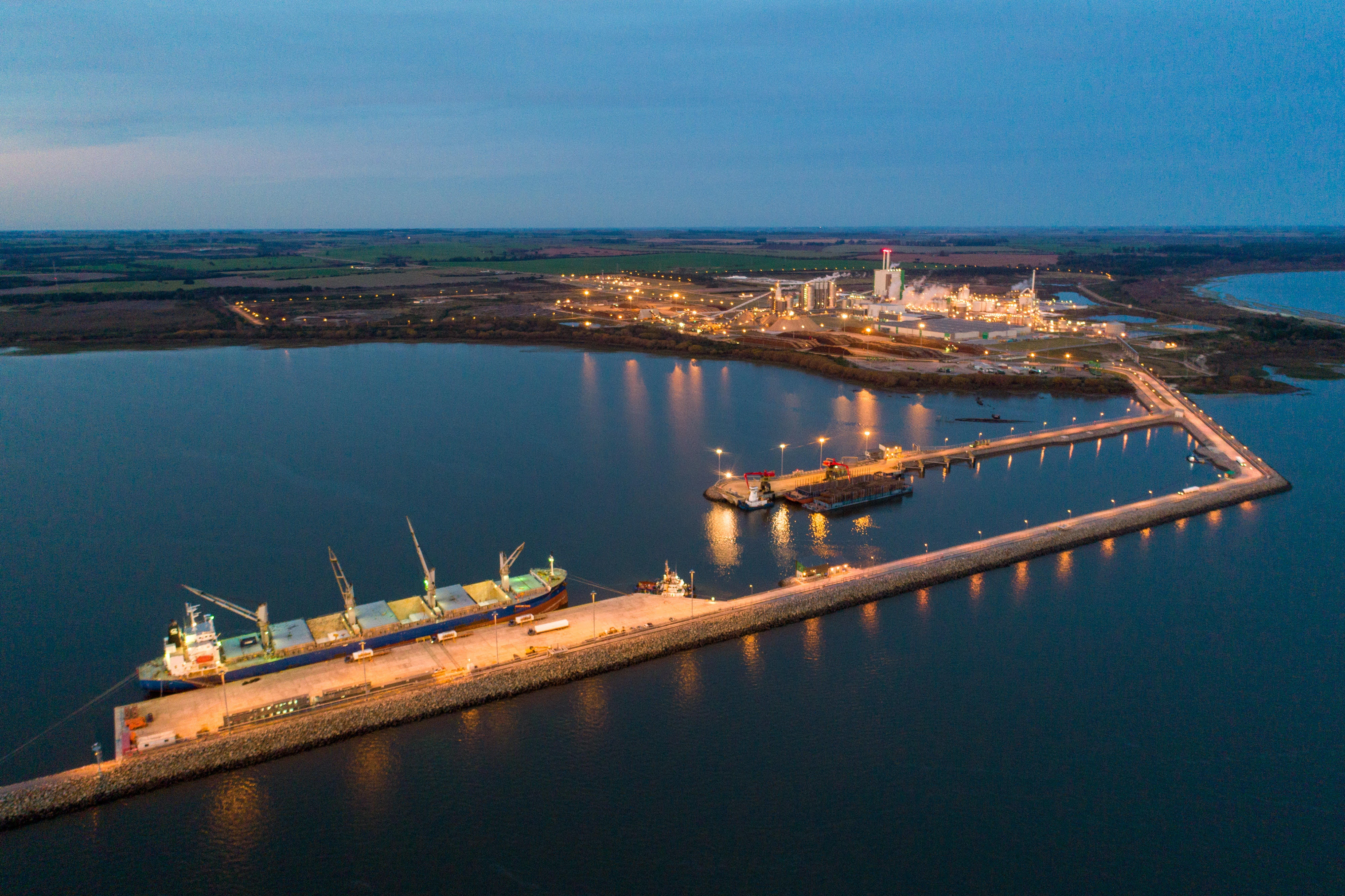 Cuenta con un canal de acceso de 600 m de longitud y un área de giro de 400 m de diámetro. Esta terminal está especializada en la exportación de pulpa de celulosa.